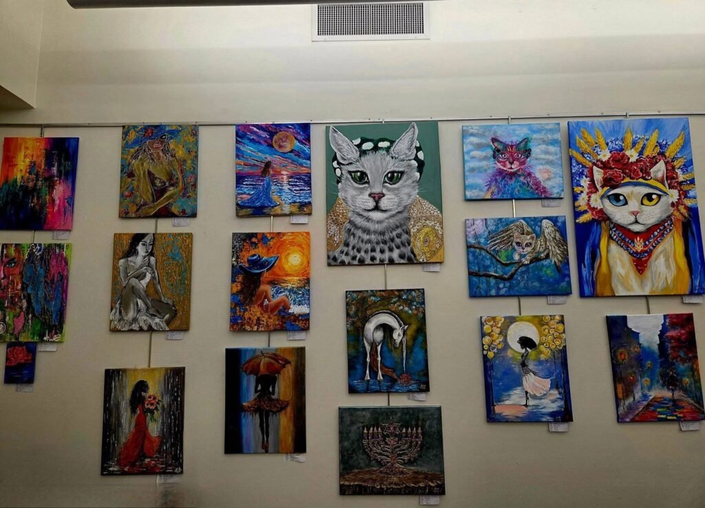 Наталия представила целую коллекцию картин — от романтических женских образов и городских пейзажей до фантазийных животных и символических сюжетов. Её работы наполнены эмоциями, яркой палитрой и сюжетной многослойностью, создавая для зрителей отдельный мир, полный красоты и настроения.