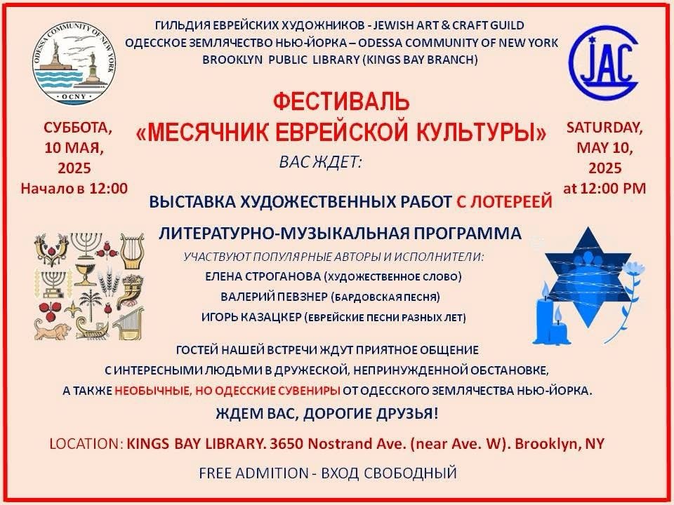 10 мая 2025 года Гильдия Еврейских Художников и Одесское Землячество Нью-Йорка в содружестве провели выставку картин и концерт в рамках проходящего в Нью-Йорке Фестиваля Еврейской Культуры.